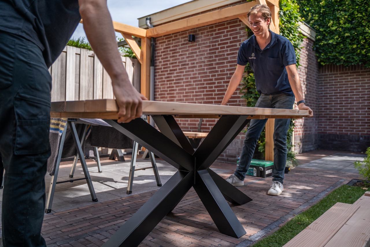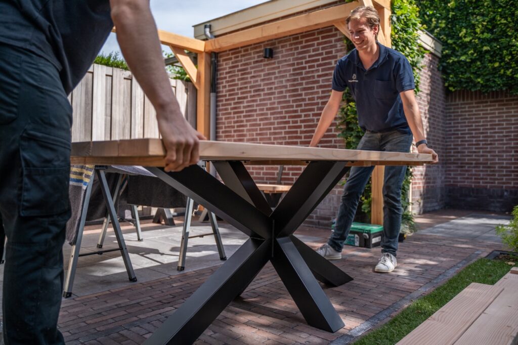 - Niet thuis bij de levering van een tuintafel? Dat hoeft geen probleem te zijn, in overleg plaatsen we bijvoorbeeld de tuintafel op de juiste plek in de tuin.