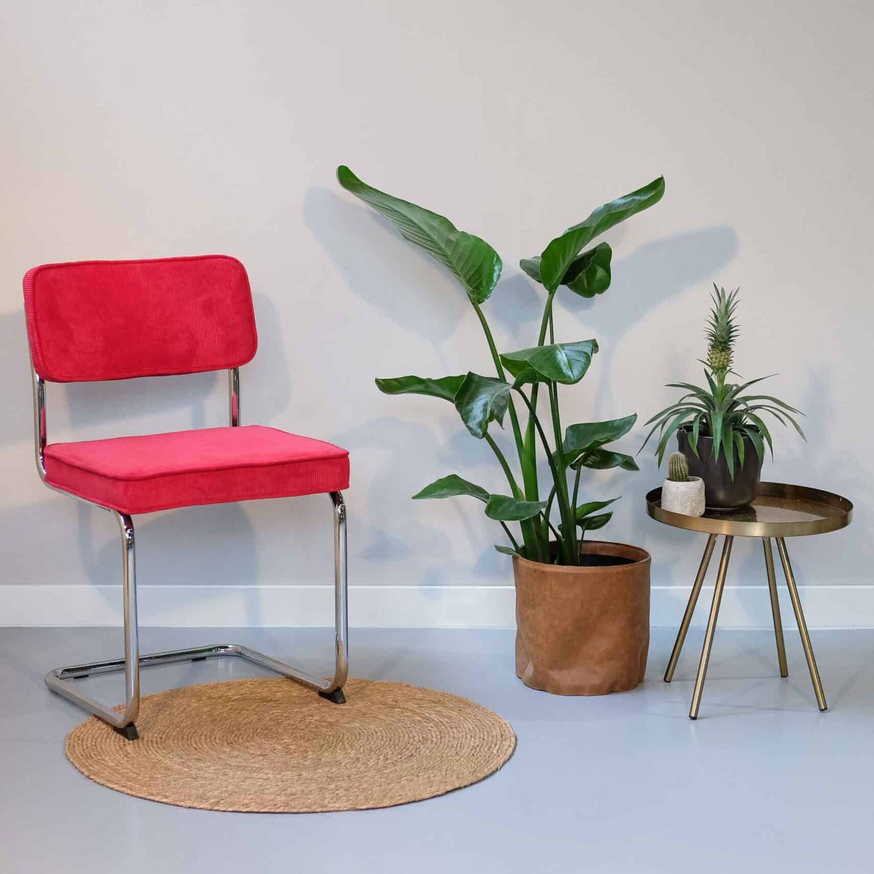 Met de Olivia eetkamerstoel in ribstof rood geef je jouw eetkamer een krachtige en moderne uitstraling. De rode kleur voegt warmte toe aan je interieur, terwijl het chroom onderstel zorgt voor een moderne en frisse afwerking. Daarnaast zul je met deze retro stoel comfortabel zitten door zijn licht verende frame. Een klassieker die al jaren meegaat!