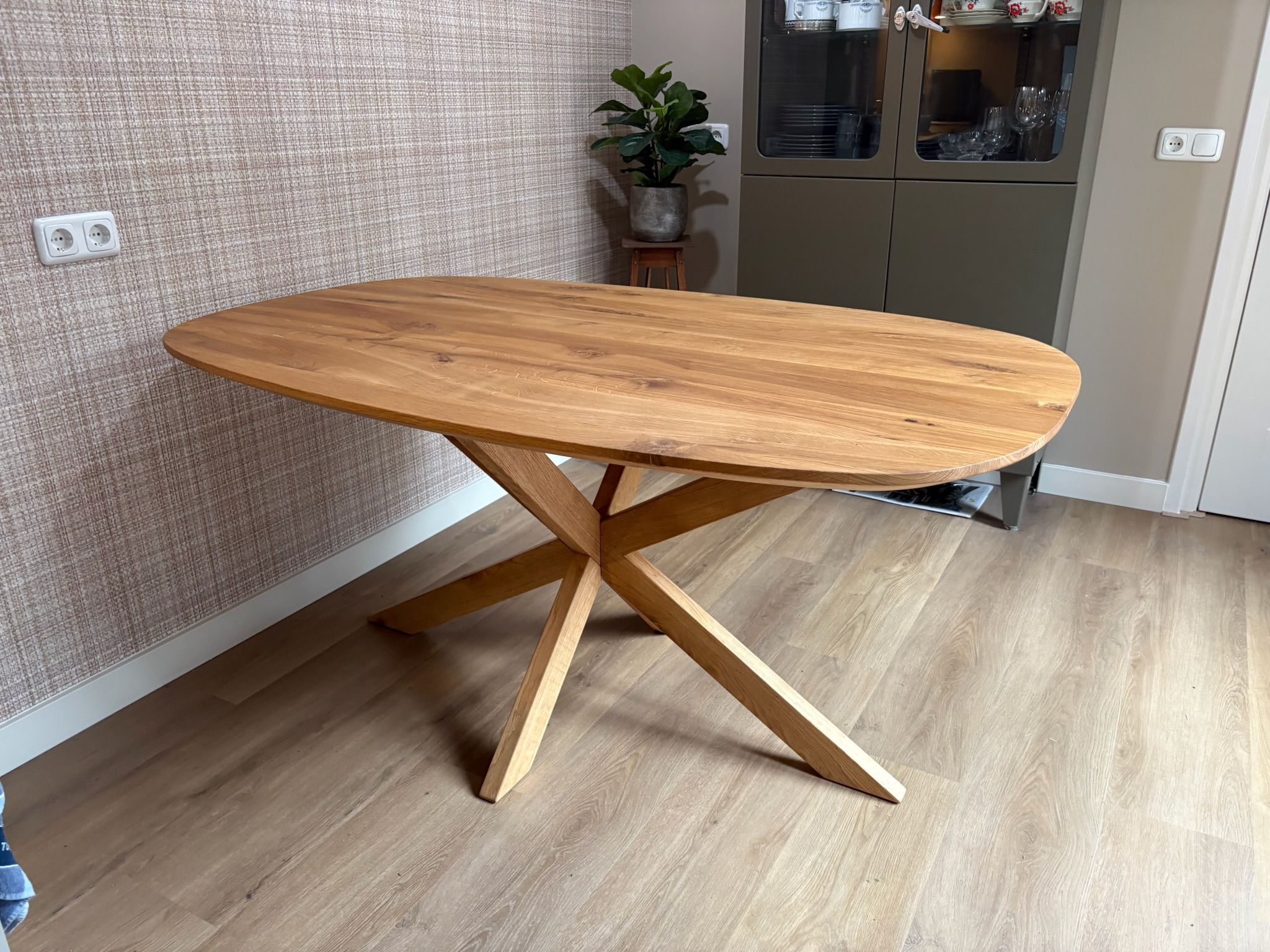 Deze Deens ovale eettafel van massief eikenhout brengt rust en gezelligheid in je interieur dankzij het zachte, organische ontwerp. De afgeronde vorm maakt het gemakkelijk om aan te schuiven en geeft een warm, uitnodigend gevoel. Daarnaast geeft de Deens ovalen vorm net iets meer oppervlakte aan de tafel ten opzichte van de traditionele ovalen vorm. Het fijne eikenhout geeft daar nog een extra natuurlijke touch aan: met zijn heldere kleur en levendige nerftekening.