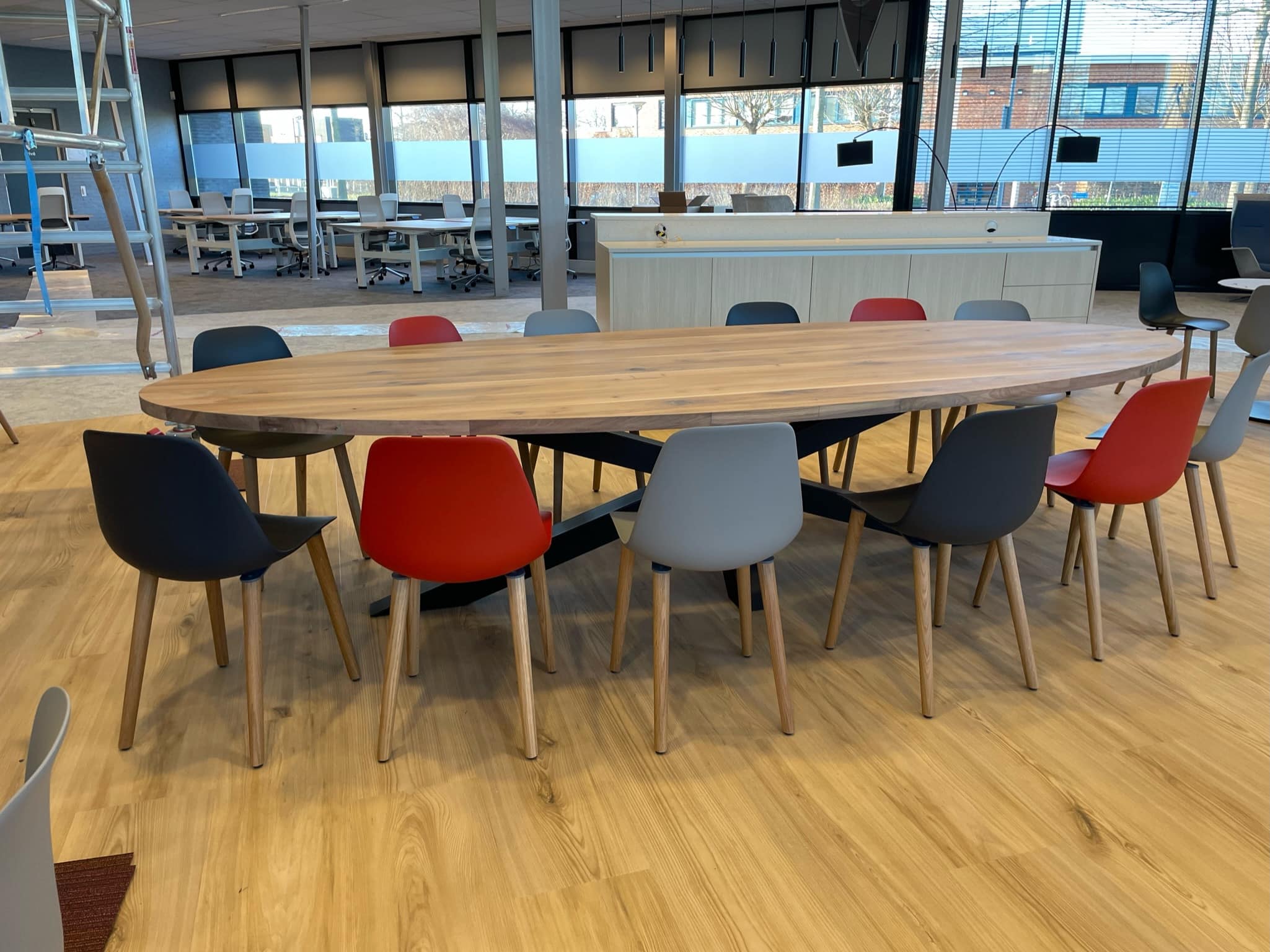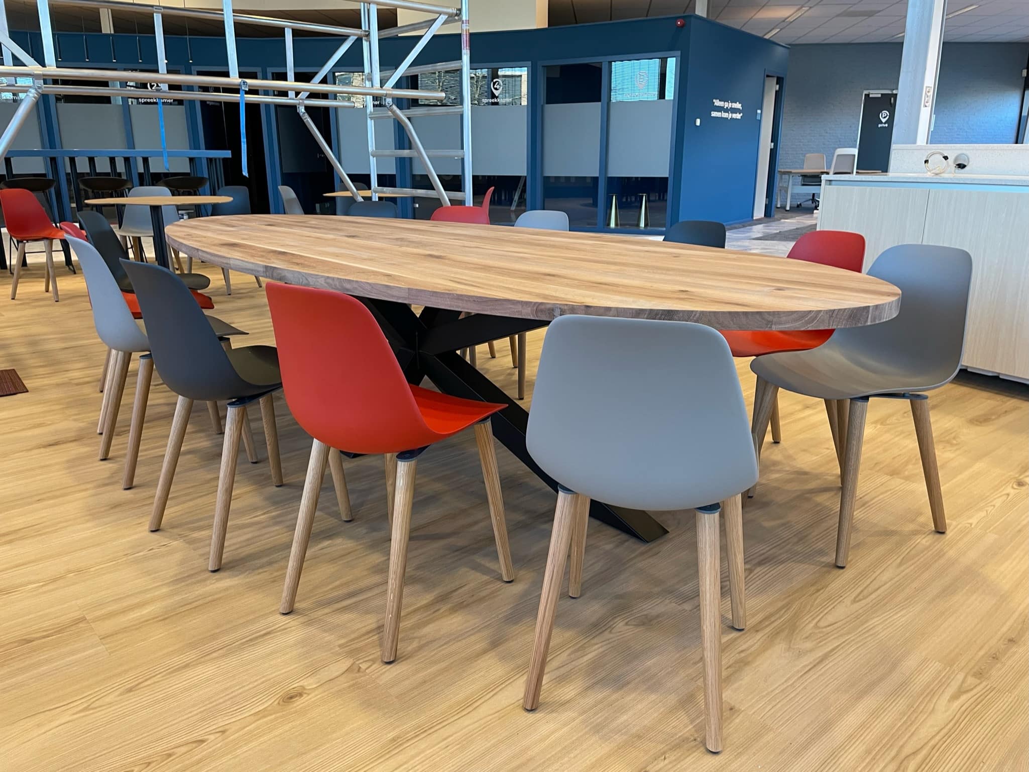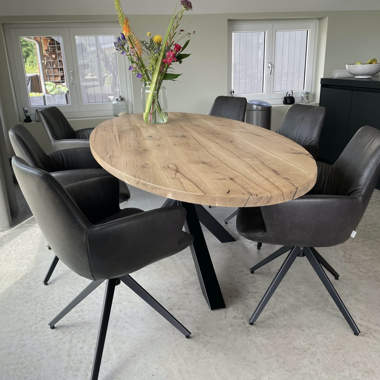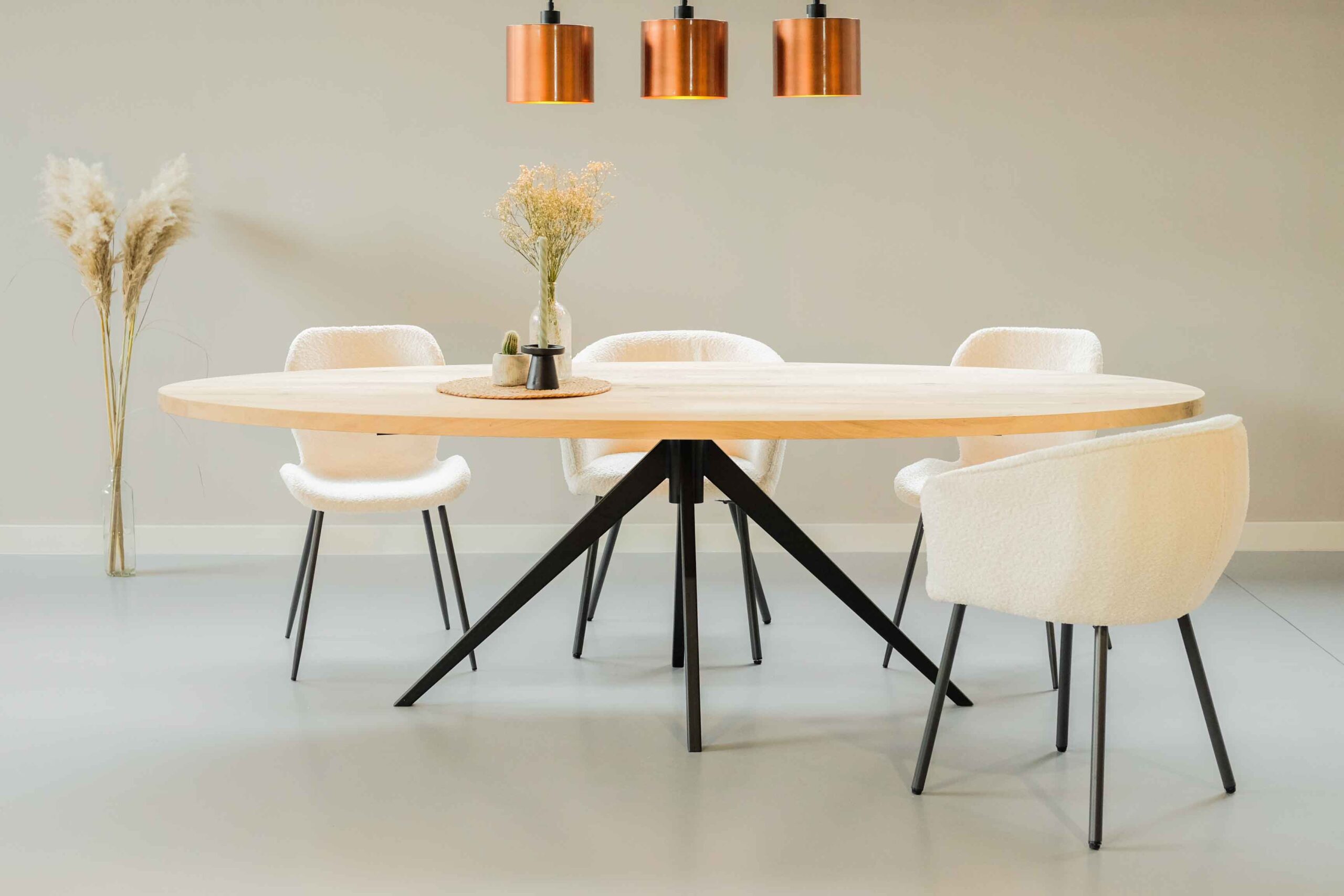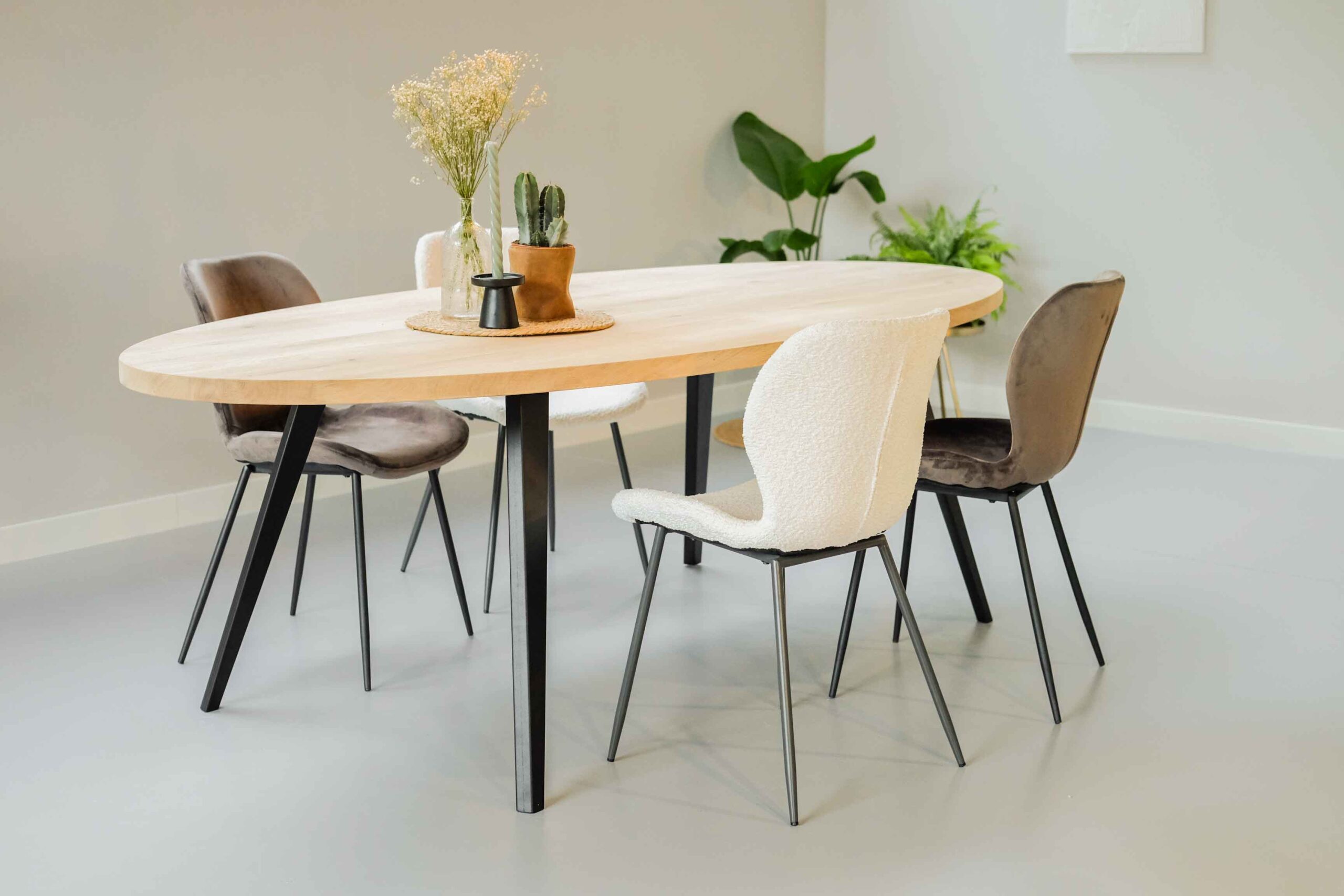 Deze ovale eettafel van massief eikenhout is een sfeermaker in jouw interieur. Met de warme kleur en mooie nerven van het eikenhout haal je een natuurlijke en stijlvolle eyecatcher in huis. Dankzij de ronde vorm voelt iedereen zich betrokken bij het gesprek en kun je gemakkelijk extra stoelen aanschuiven. De afgeronde vormen geven ruimte en rust. Ideaal voor lange diners, spelletjesavonden en gezellige borrels met vrienden of familie.