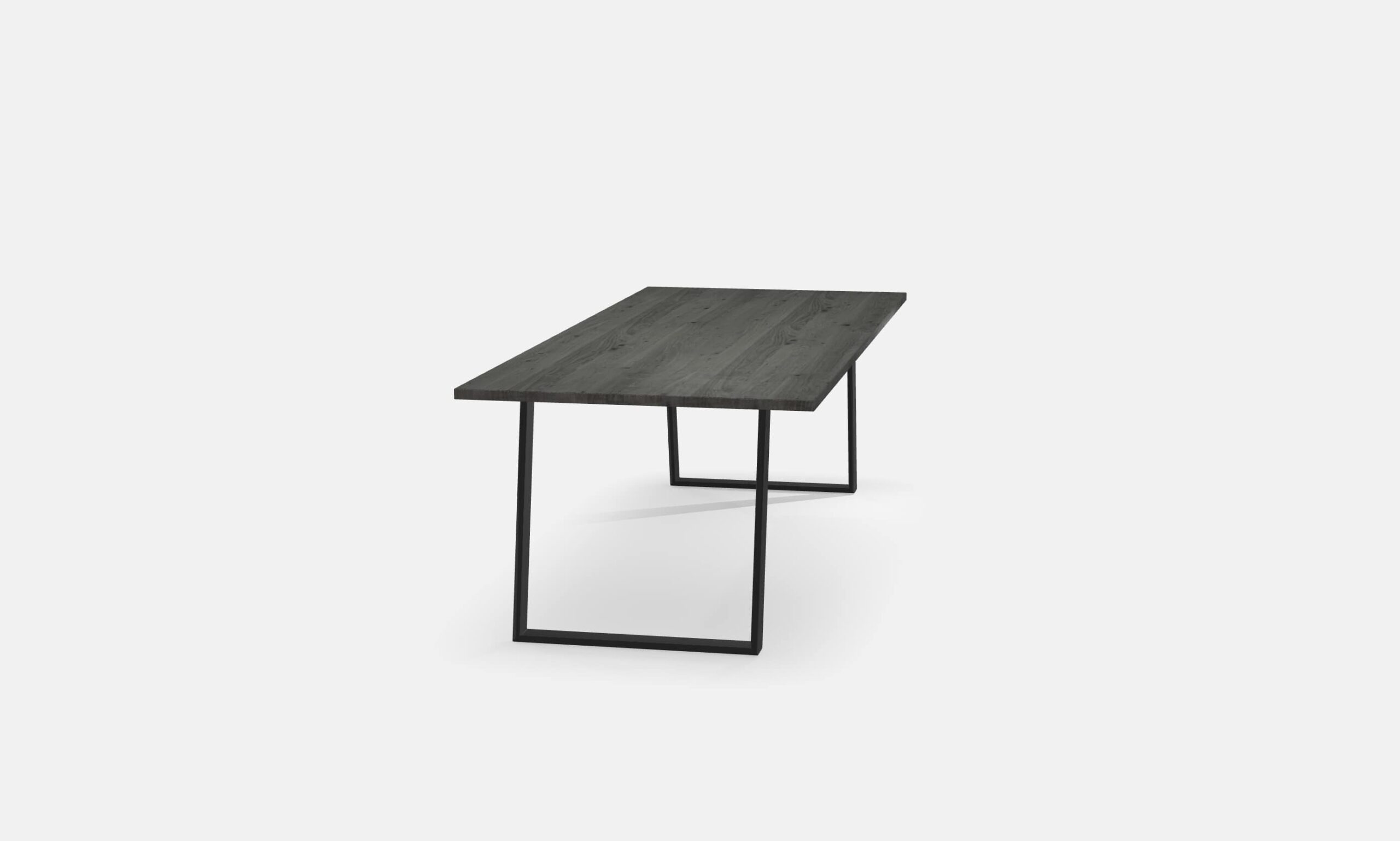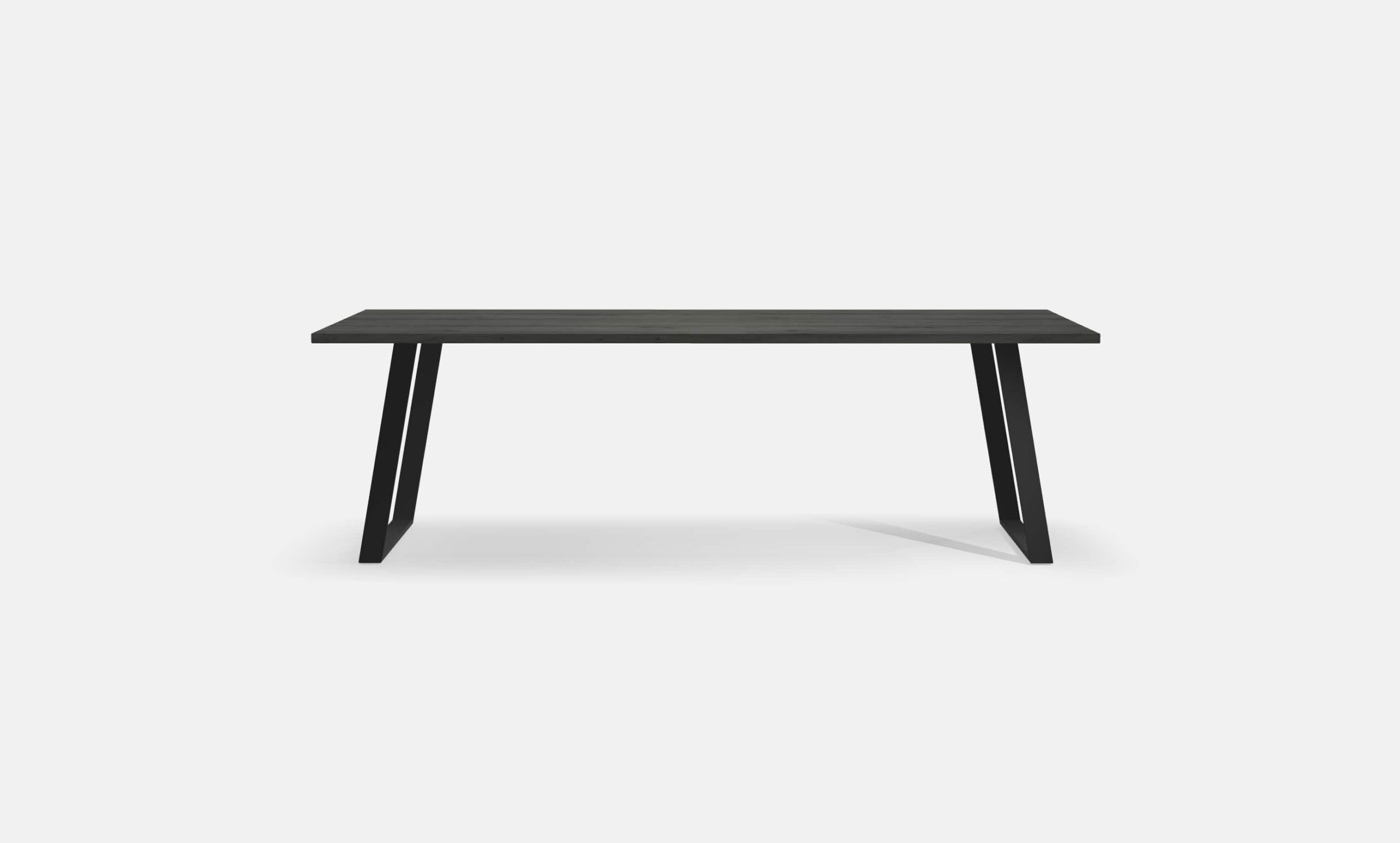 Het massief eiken tafelblad van 3 cm dik staat garant voor kwaliteit en een natuurlijke uitstraling. Eikenhout is sterk, duurzaam en tijdloos, waardoor het jarenlang meegaat en prachtig veroudert. Het blad is afgewerkt met Rubio Monocoat Deep Black, een hoogwaardige, natuurlijke olie die het hout optimaal beschermt en de prachtige houttekening mooi naar voren laat komen.