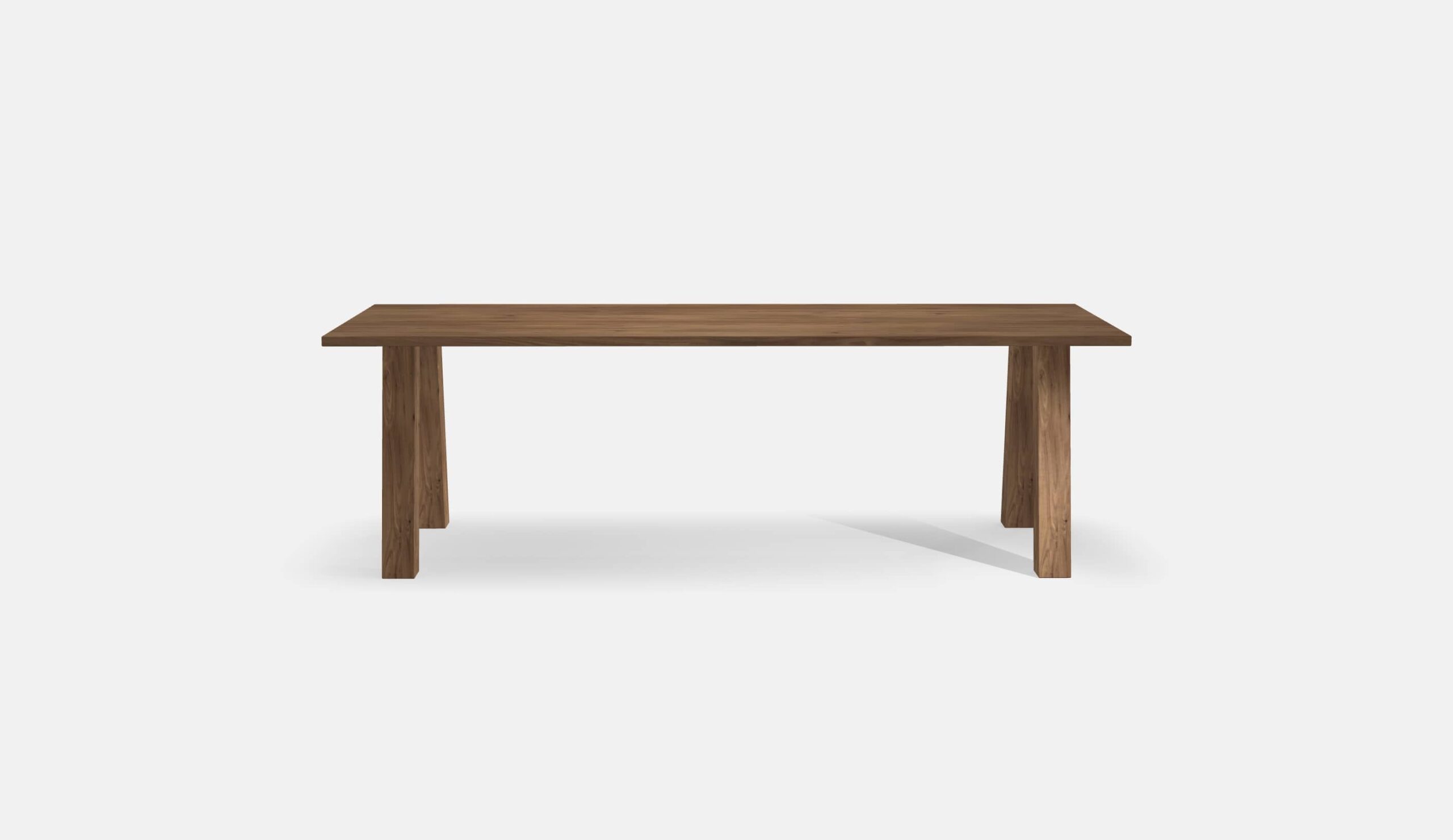 De tafel staat stevig geplaatst op Houten A zonder ligger poten. Dit houten onderstel zorgt niet alleen voor een strakke, moderne uitstraling, maar biedt ook veel stabiliteit en beenruimte rondom de tafel. Het houten onderstel geeft de tafel een unieke look en zorgt voor een strakke kleur over de gehele tafel.