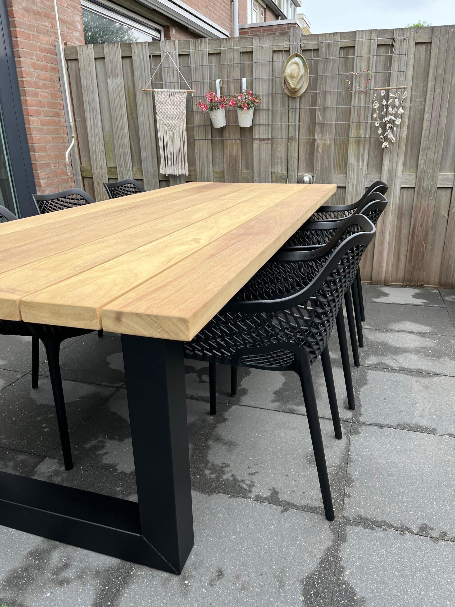 Combineer de tuintafel met onze comfortabele tuinstoelen! Tip: neem voor 4 personen 200cm, voor 6 personen 240cm, voor 8 personen 300cm en voor 10 personen een tuintafel 400cm. Op deze manier passen de stoelen tussen de poten. Lees hier onze blog zodat je precies weet welke lengte past bij het aantal personen dat jij zoekt!