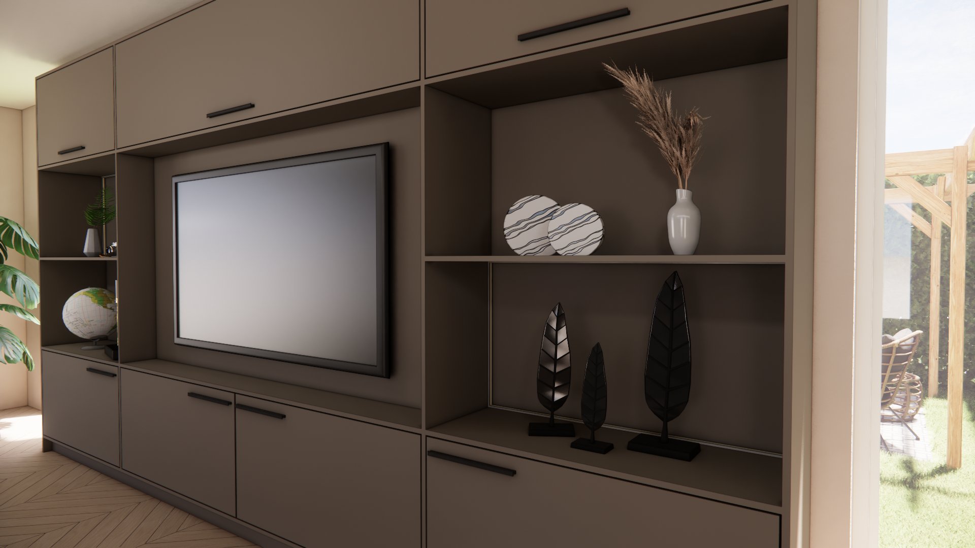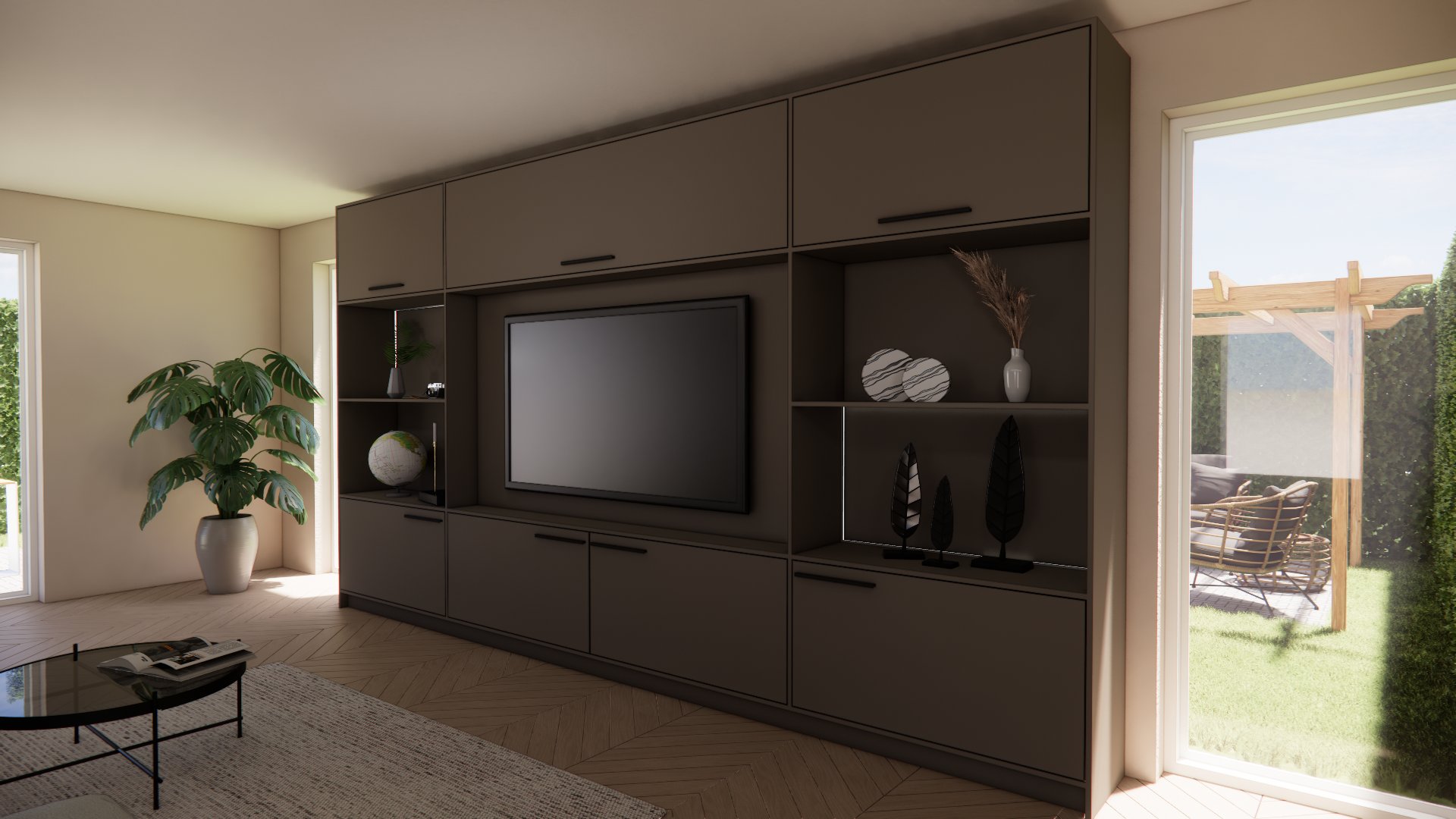 Of je nu kiest voor een zwevend Tv-meubel, een dressoir oplossing, of een cinewall met bijvoorbeeld geïntegreerde haard en verlichting: wij ontwerpen en maken jouw meubel volledig op maat. Zo sluit het altijd perfect aan bij jouw woning en stijl.