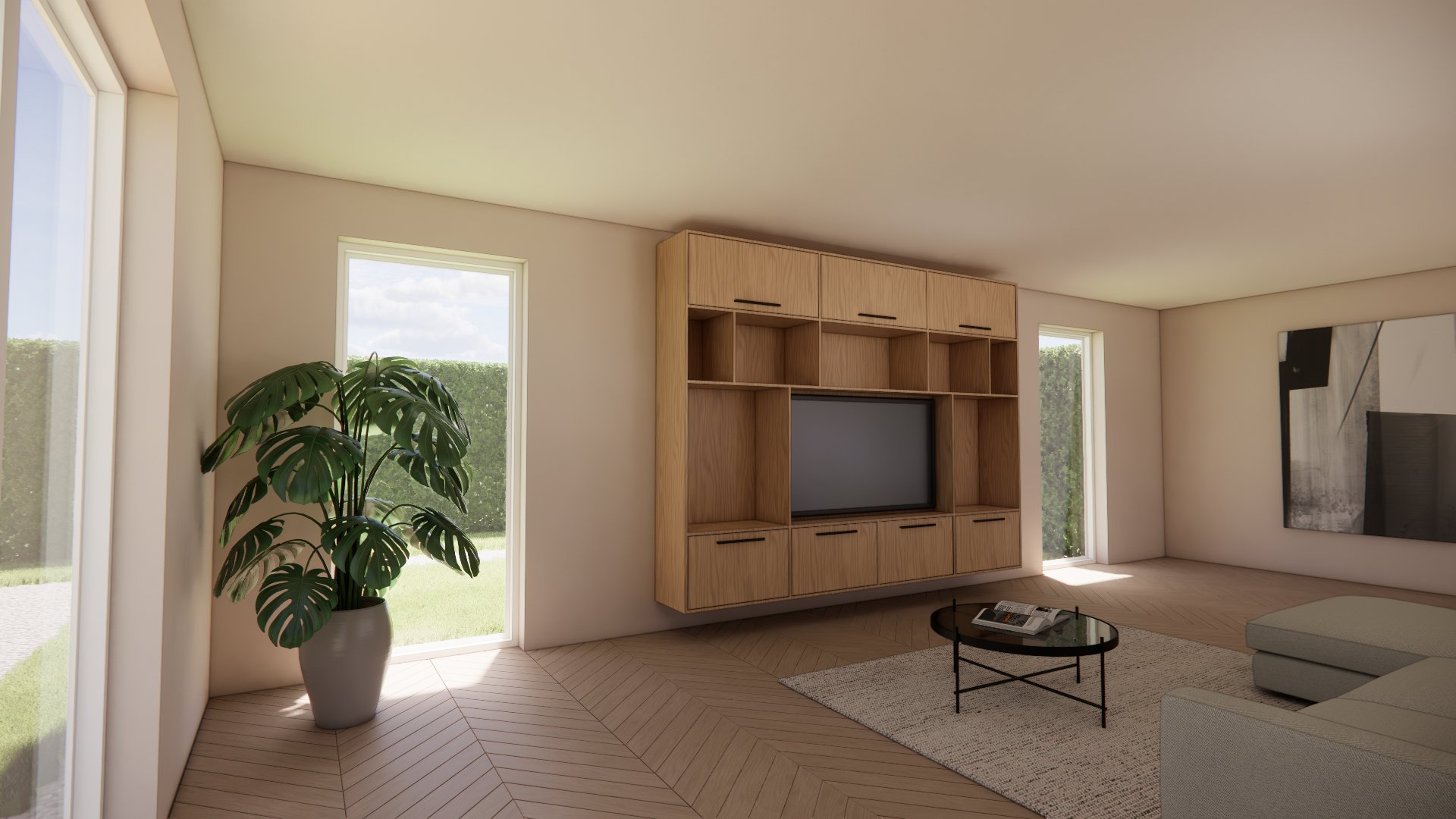 Of je nu kiest voor een zwevend Tv-meubel, een dressoir oplossing, of een cinewall met bijvoorbeeld geïntegreerde haard en verlichting: wij ontwerpen en maken jouw meubel volledig op maat. Zo sluit het altijd perfect aan bij jouw woning en stijl.